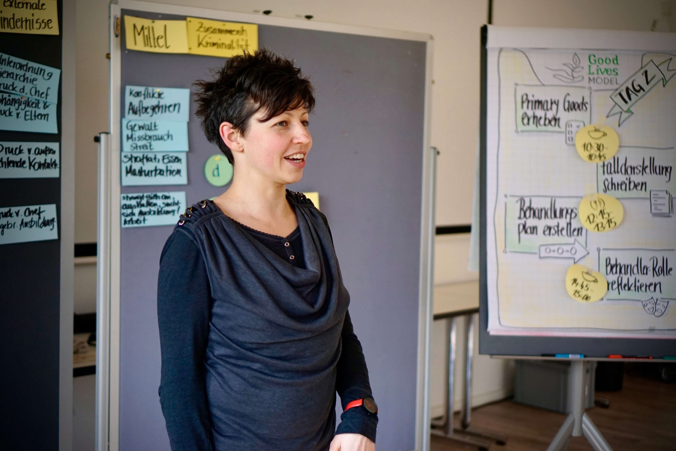 Das Good Lives Model (GLM) zielt darauf ab, straffällig gewordene Menschen ganzheitlich und im Sinne eines humanistischen Menschenbildes zu begleiten, damit sie ihre Bedürfnisse auf eine prosoziale und nachhaltige Weise erfüllen können. Diese Zukunftsperspektive ist der Grundstein für langfristige Straffreiheit. In Fortbildungen lernen Sie, wie Risikoreduktion ganz natürlich über den Fokus auf persönliche Ressourcen und Ziele funktioniert.